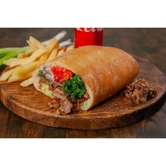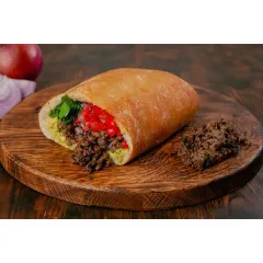 ג'אבטה חמימה במילוי קבב הבית מפורק ומתובל בתיבול הסודי עם ממרחים וסלטים לבחירתכם